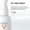 O Protetor Solar Facial Vichy UV-Age Daily FPS60 40g é um protetor anti-idade 3 em 1 aqua-fluido toque seco e oil-free/não oleoso. Formulado com a patenteada tecnologia de proteção NETLOCK, que forma uma rede de proteção solar uniforme, resistente e com uma textura leve e ultra fluida.